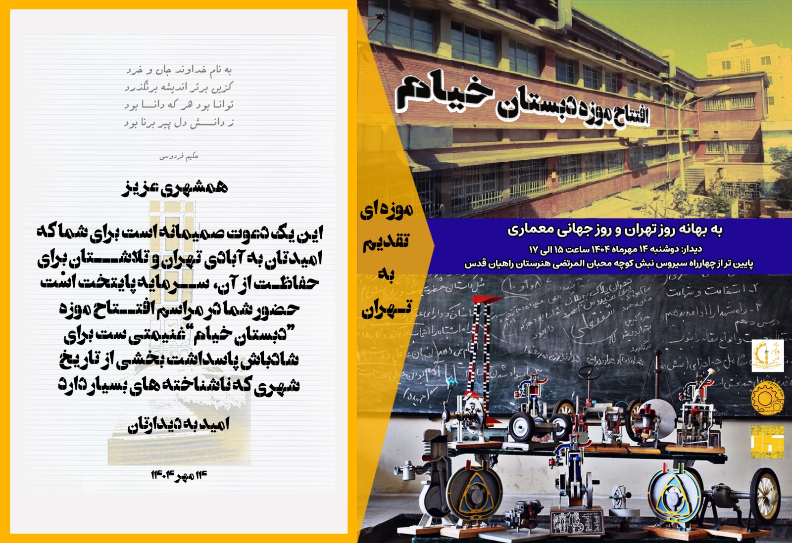 مطالب بیشتر در مورد این بنا را می توانید در لینک "موزه مدرسه خیام" ببینید