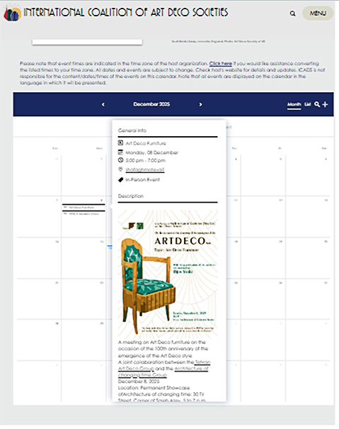 انتشار خبر نشست در تقویم جهانی برنامه های آرت دکو