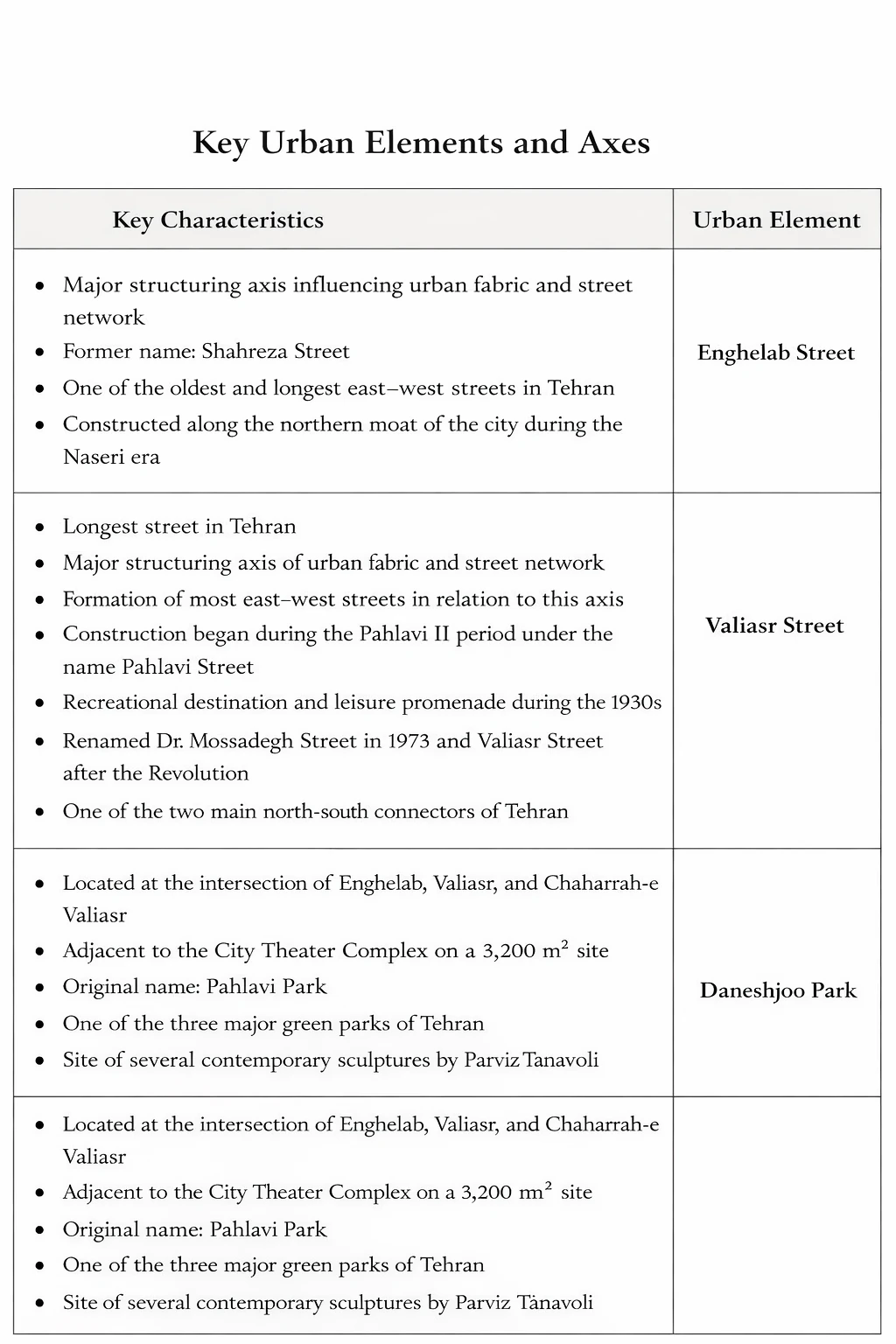 Tarh va Me‘mari Consulting Engineers. (2013). Urban Design Framework Study Reports: University Area. Tehran: Tehran Municipality Beautification Organization.