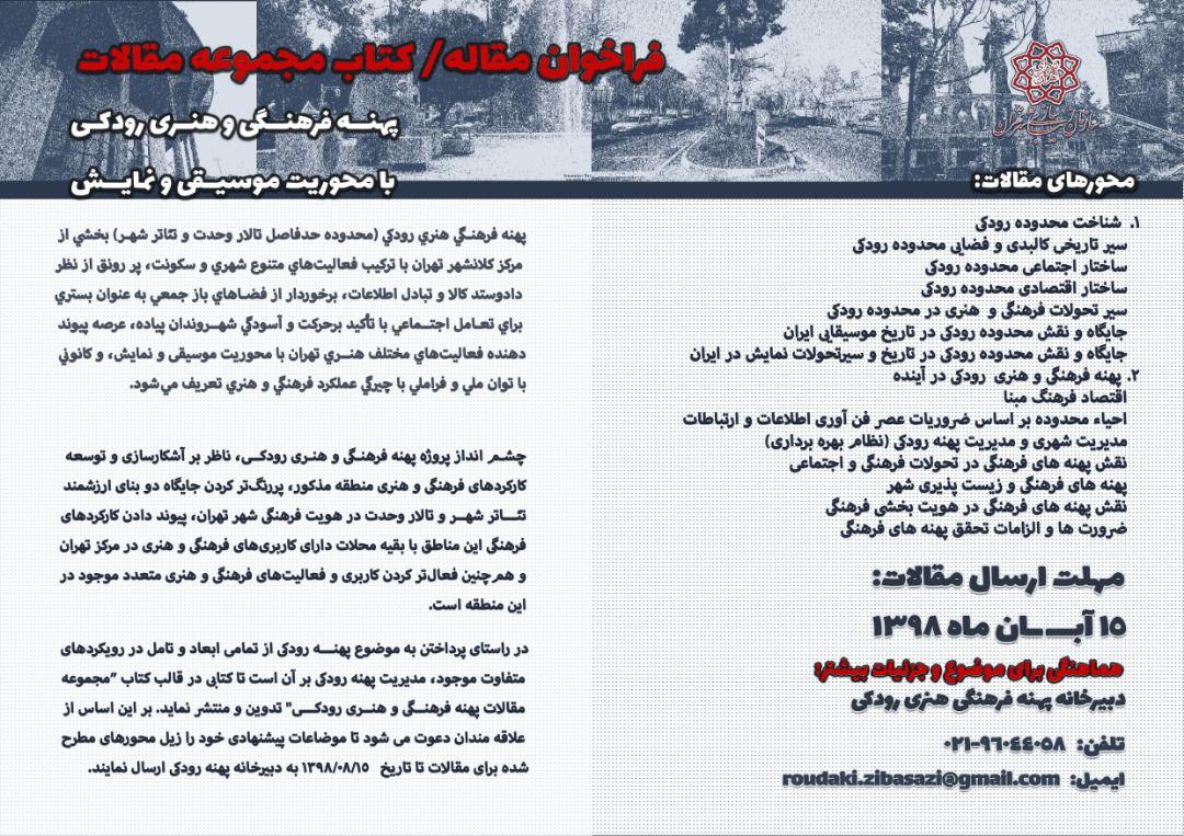 - the cultural development project of the Rudaki Neighborhood (Tehran’s Performing Arts and Music Zone),