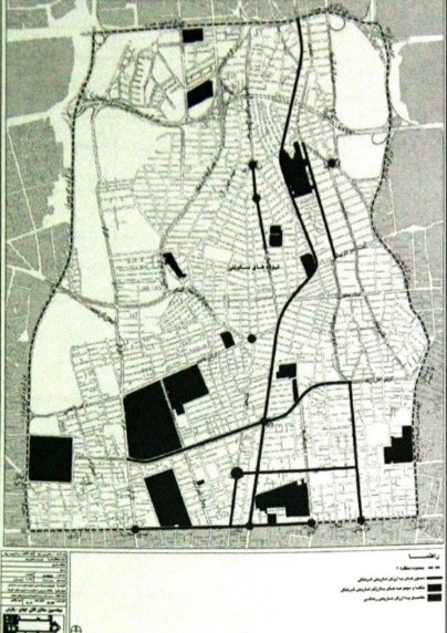 Historical study of the area in urban plans, source: (Deputy Technical and Civil Engineering Office of Tehran Municipality, The Skeleton of Tehran City, Volume 2, 1997)