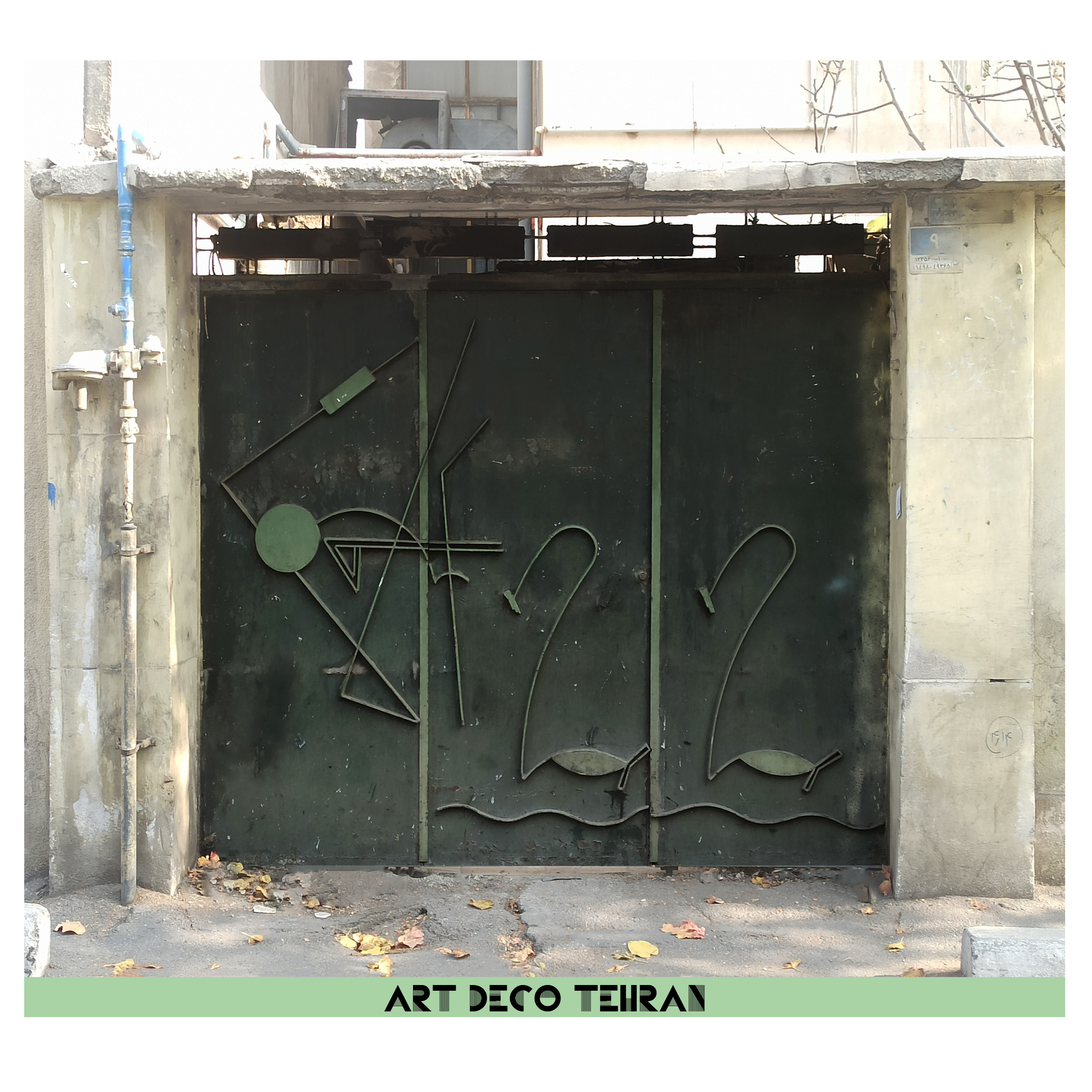 توضیحات: به طور کلی استفاده از فلز به عنوان نماد دوران مدرن است، در این میان آهنگرانی بودند که با وجود سختیِ فلز، طرحهای دارای منحنی بر روی درهای آهنی اجرا میکردند علاوه بر این موضوع طرح اجرا شده بر روی در که ترکیبی از صفحه و نقطه ست نیز از نشانه های هنر آرت دکو است و یاد آور آثار واسیلی کاندینسکی
